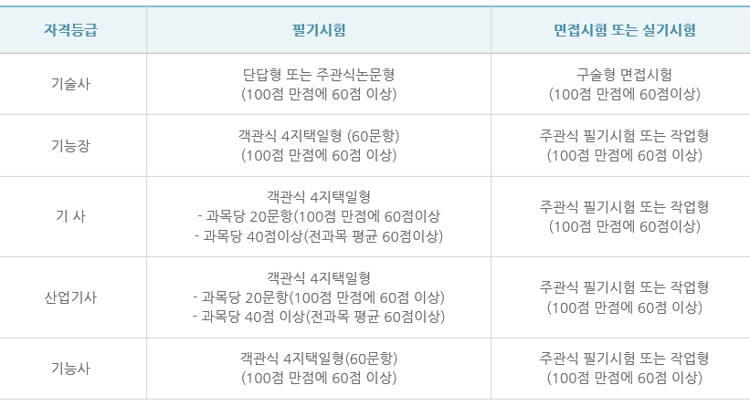 * 기사 : 응시하고자 하는 종목에 관한 공학적 기술이론 지식을 가지고 설계, 시공, 분석 등의 기술업무를 수행할 수 있는 능력의 유무