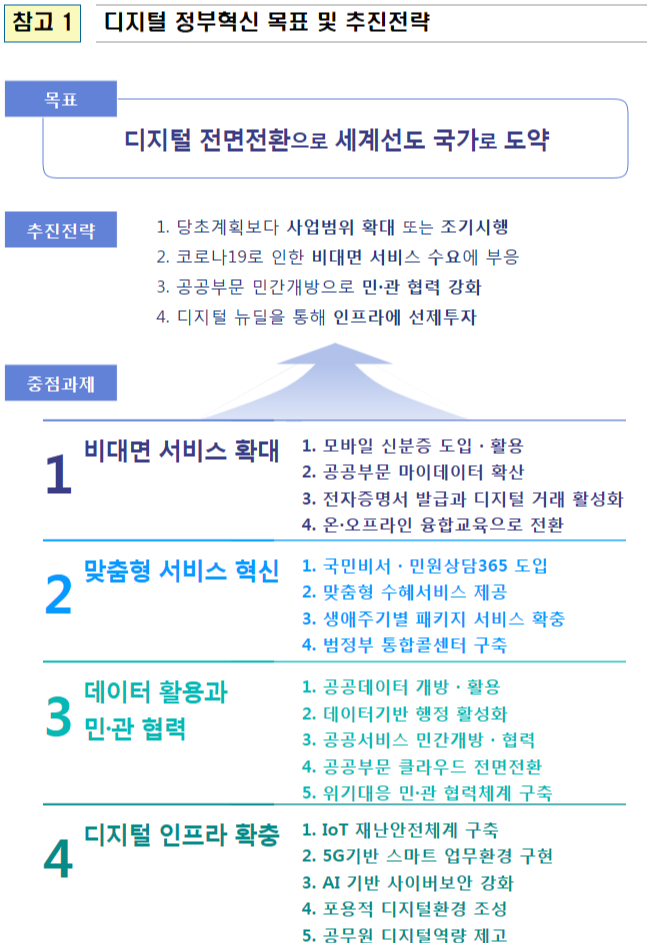 ■ 행안부에서 발표한 내용을 간단하게 정리하면 "디지털 전면전환으로 세계선도 국가로 도약"