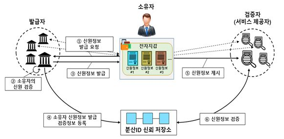 이를 위해 블록체인 기반의 분산ID(DID) 시스템이 도입된다. 중앙 시스템에서 신원정보를 관리하는 중앙집중형 신원증명 방식에 비해, 개인이 신원정보를 직접 관리하게 됨에 따라 개인정보 대량 유출 등으로 인한 피해 우려를 덜 수 있습니다.