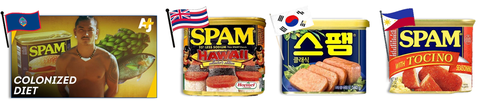 반면으로, 제2차 세계대전때 적극 참여 했음에도 불구하고 미국에서는 스팸은 조롱받는 코미디 대상이 되기 까지 ‘가난한 사람들이 먹는 음식,’ ‘아무도 원하지 않지만 많기만 한 것'등의 이미지를 가지고 있습니다. 이 사실을 알고 ‘스팸은 왜 미국 보다 하와이, 괌, 한국 등의 나라들에 특별히 좋은 이미지와 사랑을 받는가’라는 질문의 답을 찾기 시작했습니다.