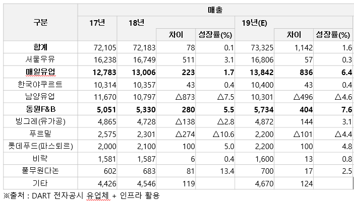 국내 유가공 시장 ‘7조3천억’ [전년比, 1.6% 성장 예상] (※ 출처 - 전자공시시스템)