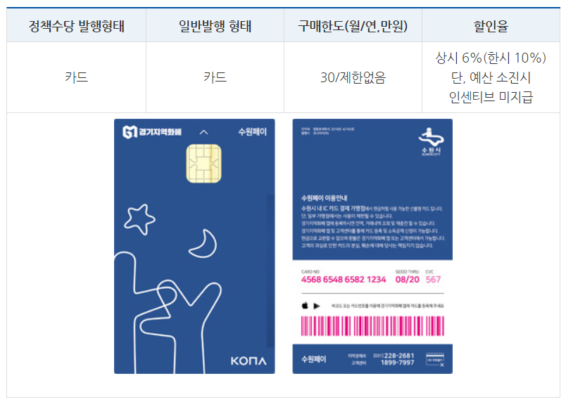 시·군의 지역 실정에 맞게 지류형, 카드형, 모바일형 중 원하는 형태의 지역화폐가 발행되며 경기도는 발행 형태와 무관하게 발행비, 할인료, 플랫폼 이용료 등에 소요되는 예산을 시·군에 보조함으로써 지역화폐 사용이 활발하게 운영될 수 있도록 지원할 계획이랍니다. 지역 내 소비를 늘려 골목상권과 지역경제를 살리고 도민에게는 6%의 할인 혜택을 주는 경기지역화폐! 어떻게 구입하고 사용할 수 있는지 지금부터 함께 알아볼겠스니다.