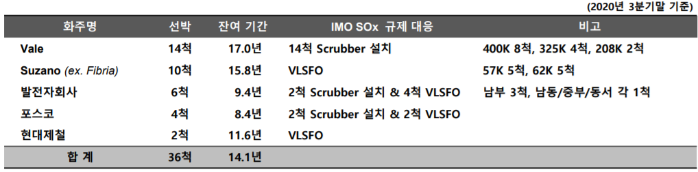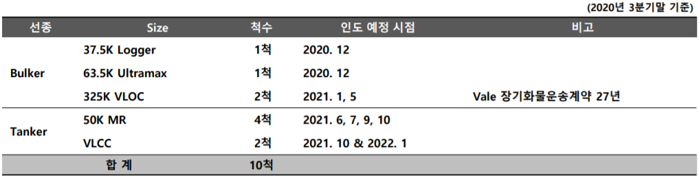 화물수요는 코로나 19, 미중 무역 분쟁 및 친환경 기조에 따른 석탄 화력발전 퇴출 등 부정적인 상황에도 불구, Dry Bulk 화물 주요 수출입 국 가의 경기 활동 회복으로 전체 해상물동량은 2019년을 상회하는 수준(약 53억 톤)으로 증가 기대된다. 선박 공급은 2020년 대비 신조 인도량 감소 예상되는 상황 하에서 친환경 고 효율 선박 선호 현상 지속으로 인한 노후선 및 비경제선 시장 퇴출 가속화 전망됨에 따라 공급 증가율 1%대 급감 예상하고 있다. 이에 전반적으로 글로벌 경기 회복에 따른 물동량 증가와 본격적인 선박 구조조정으로 시황 회복 기대할 것으로 보인다.