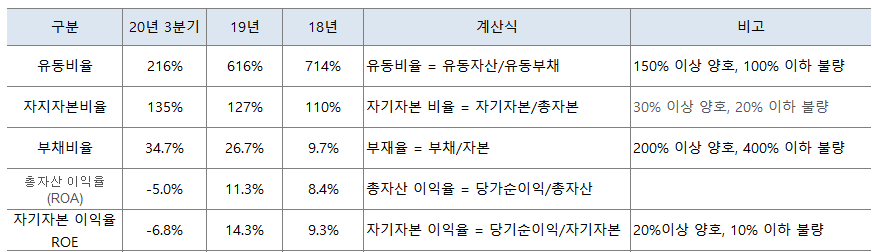 알서포트 재무제표 분석하면 유동비율, 부채비율이 아주 좋으며, ROA, ROE의 좋습니다. 다만 20년 1분기 계열사 손익 및 환율 그리고 법인세 증가로 당기순이익 마이너스 변경되었습니다. 하지만 영업이익이 좋아 문제가 되지 않습니다.