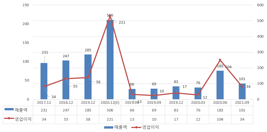 알서포트 성과분석 보면 9월 누계는 매출액은 360억 전년비 +158억, +78.2% 성장하였고 특히 코로나 19가 극심한 2분기의 성장률이 2~3배가 성장하였습니다. 영업이익은 149억 전년비 +108억, 영업이익률이 41.4%로 크게 개선하였습니다.