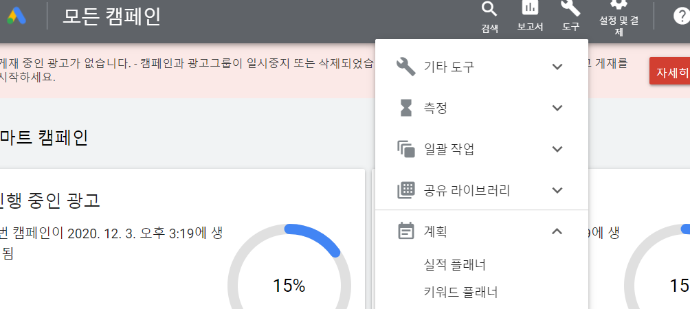 6] 우 상단 도구를 클릭하면 계획에 "키워드 플래너"를 사용하시면 됩니다.