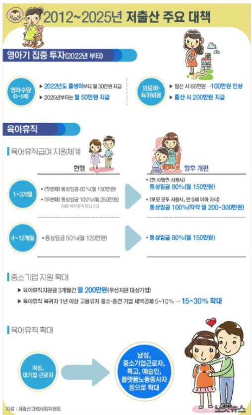 정부에서 저출산 주요 대책을 발표했습니다. 실효성 있는 지원으로 저출산 시대를 마무리했으면 합니다.