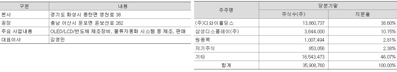 공정장비사업부는 공격적인 R&D 활동을 통해 첨단산업분야인 OLED와 LCD 등의 디스플레이 및 반도체, Solar Cell 제조용 핵심장비의 국산화에 앞장서고 있습니다. 공정장비 2,102억(OLED/LCD 제조장비)으로 주요고객은 삼성전자(주), 삼성디스플레이(주) 등이 있습니다.
