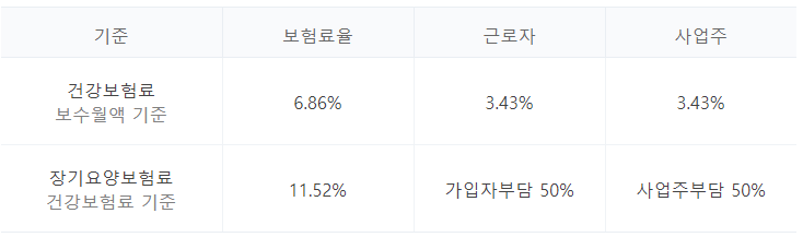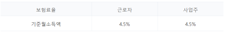 그리고 아르바이트도 4대보험을 보장받을 수 있으며 4대보험은 국민연금, 건강보험료(장기요양보험료), 산재보험료, 고용보험료가 있습니다. 그럼 4대보험 및 보험료률에 대해서 살펴보겠습니다.