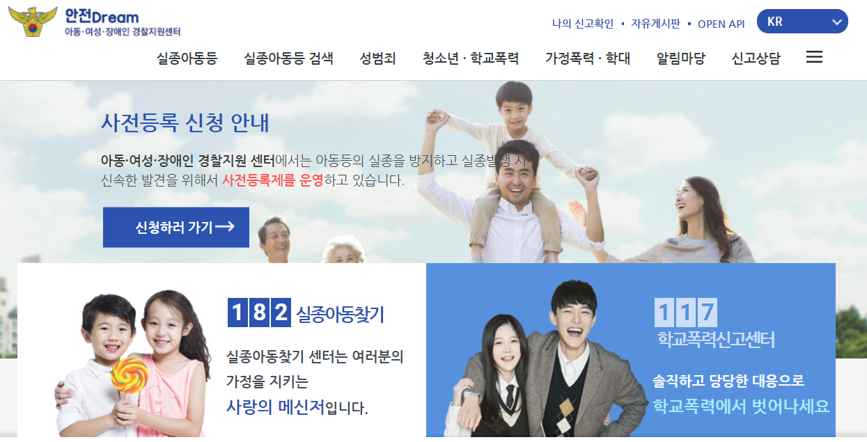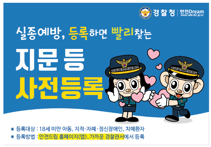 안전Dream 사이트(www.safe182.go.kr)에 들어가시면 간단하게 등록할 수 있습니다.