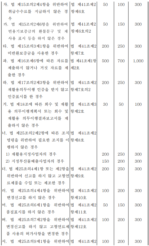 가. 위반행위의 횟수에 따른 과태료의 가중된 부과기준은 최근 1년간 같은 위 반행위로 과태료 부과처분을 받은 경우에 적용한다. 이 경우 기간의 계산은 위반행위에 대하여 과태료 부과처분을 받은 날과 그 처분 후 다시 같은 위 반행위를 하여 적발된 날을 기준으로 한다.