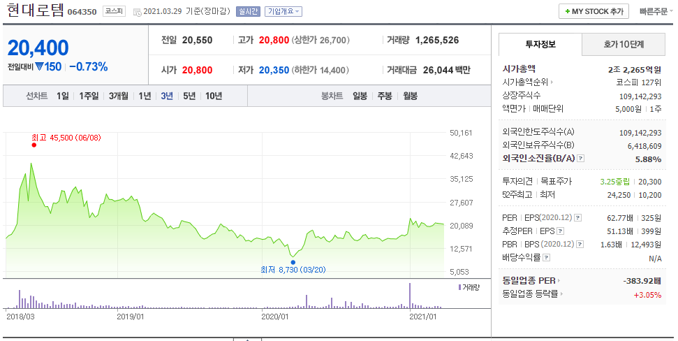 현재 현대로템주가는 20,500원을 형성하고 있습니다.