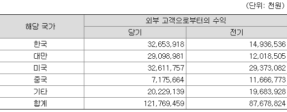'20년 주요 매출국가는 한국 326억, 대만 291억, 미국 326억 순으로 매출성장률이 높았습니다.