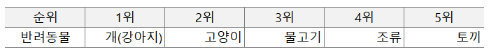 몇 일전에 개는 휼륭하다 보다가 2021년 1월 반려동움 컨설턴트 사이트 'Petsecure'에서 발표한 세게 반려동물 인기 순위를 발표하였습니다. 당연히 반려동물의 1위는 강아지(개) 입니다.