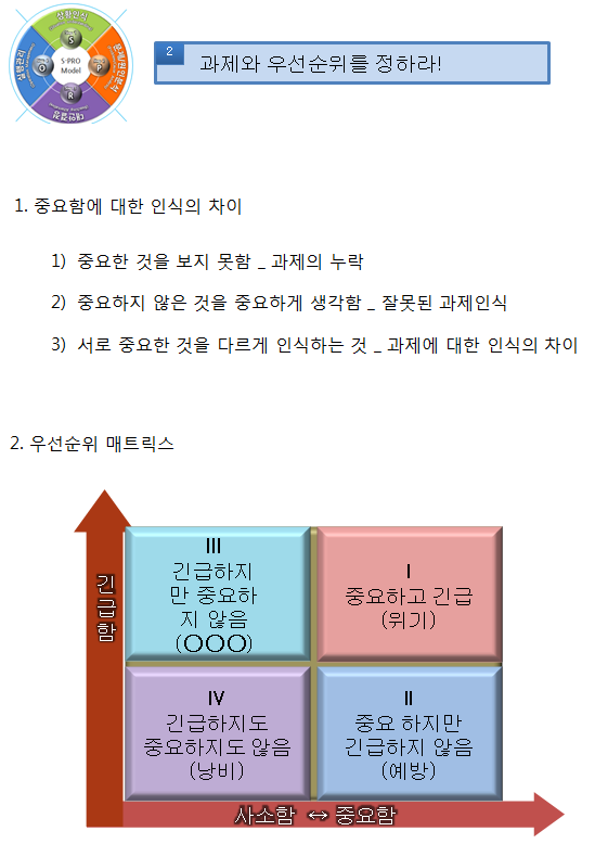 오늘은 S -PRO Model, 상황인식, 문제분석, 대안결정, 실행관리 에 대해서 포스팅하겠습니다.