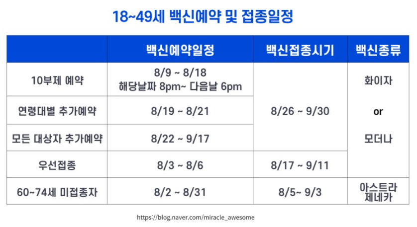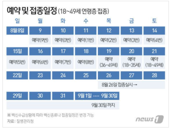 □ 8월 21일 : 18-49세 추가 예약