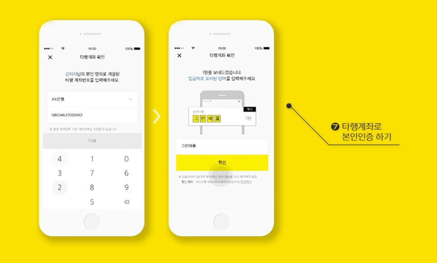카카오뱅크에서는 지점을 방문해 직원을 만나는 대신, 본인이 사용하는 은행 계좌를 통해 본인 인증 절차를 대신합니다.