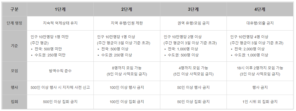 우선 수도권 4단계, 비수도권 3단계로 설정된 시회적 거리두기 단계를 18일부터 31일까지 2주 더 연장하겠다고 발표하였습니다. 다만, 복잡했던 사적모임 기준을 단순회해 수용성을 높이고, 접종 완료자에 대해 사적오임 제한을 완화한다고 합니다.