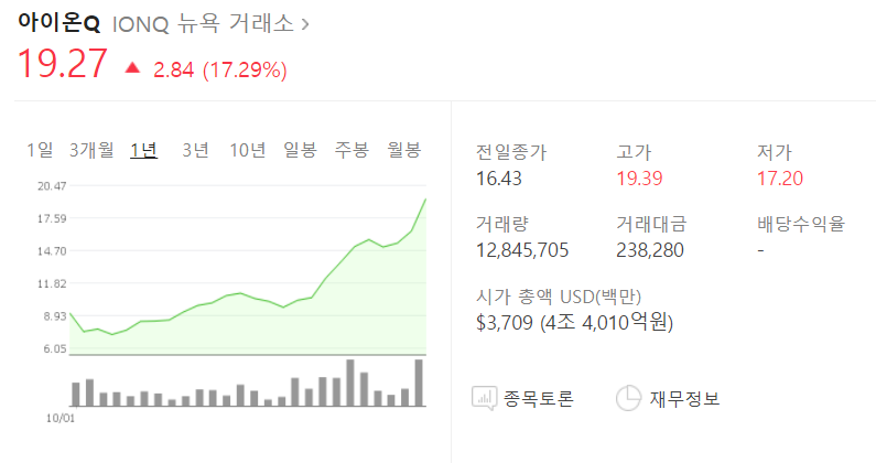■ 아이온큐 주가 ('21년 10월 1이 상장)