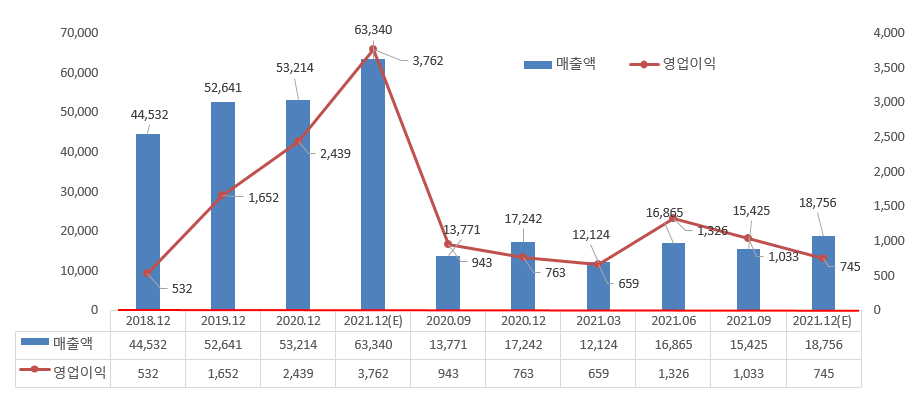 -. 3분기 매출액은 4조 4,413억으로 전년비 8,441억, +23.5% 증가하였으며 영업이익은 3,018억으로 전년비 1,341억, 영업이익율(%)은 6.8%입니다. 매출액 증가로 1,812억이 증가하였으나 GP액은 179억 증가하여 비용은 292억으로 증가하였습니다.