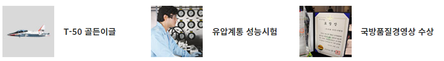 1990년 F-16 국산화 사업 참여를 시작으로 1993년에는 국내 최초로 면허생산된 UH-60 사업의 유압작동기 전문 업체로 지정되어 성공적으로 사업을 수행하였습니다. 1994년에는 대한민국 기술로 처음 제작된 초등훈련기인 KT-1의 유압계통 개발을 완료하는 한편, 1997년에는 초음속 고등훈기인 T-50 골든이글의 핵심 구성품 개발에 착수하여 성공리에 개발을 완료하는 등 항공유압 분야에 있어서 차별화된 기술력을 과시하였습니다.