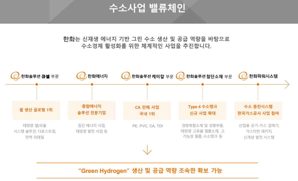 한화솔루션은 UAM와 신재생 에너지 기반 그린 수소 생산 및 공급 역량을 바탕으로 수소경제 활성화를 위한 체계적인 사업을 추진합니다. 이를 바탕으로 지속적인 매출 성장이 기대되는 기업입니다.