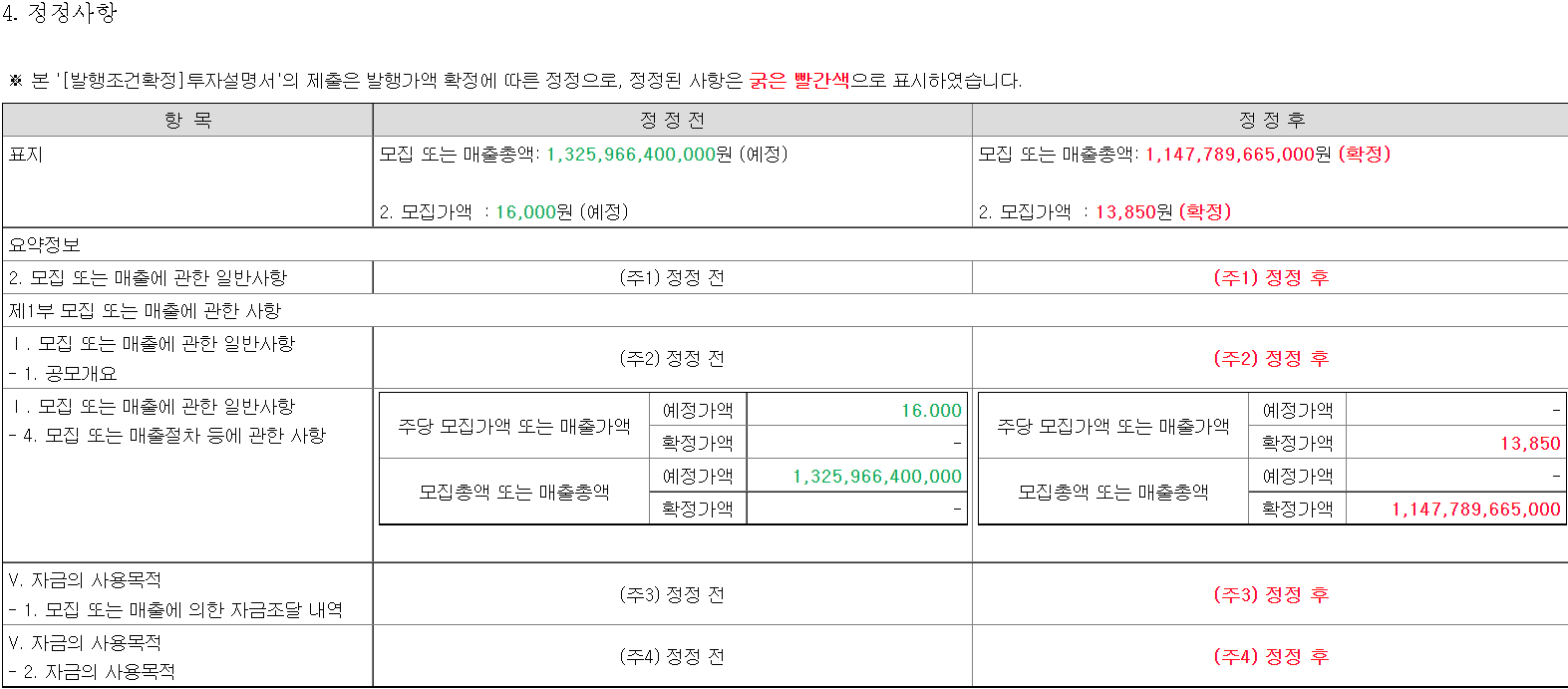 오늘 문자가 왔습니다. 주당 16,000원 청약단가, 2월 10일. 11일 청약일입니다. 하지만 정정신고(보고) 주당 13,850원 청약단가가 확정되었습니다.