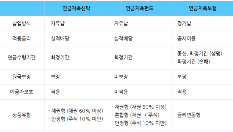 개인연금은 개인이 스스로 가입 여부를 결정하는 금융상품으로 신탁형, 펀드형, 보험형으로 구분할 수 있습니다. 신탁형은 은행에서 판매하며 확정 기간형으로 원금 보장형입니다.