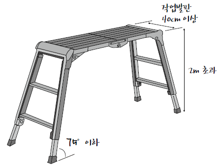 - 2m 초과 높이의 말비계에는 폭을 40cm 이상으로 하여야 합니다.