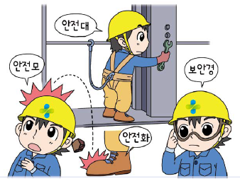 * 대표적인 추락방지 조치 : 작업발판, 안전난간, 추락방호망 설치, 안전대 착용