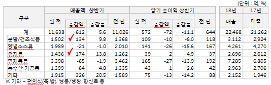 - 식품사업 매출 전년比 +612억 +5.6% 증가 (면류의 역성장) / 영업이익 전년比 △72억 감소
