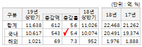 - 해외 +69억(+7.3%) : 라면 수출액 19년 상반기 450억(전년比+80억)