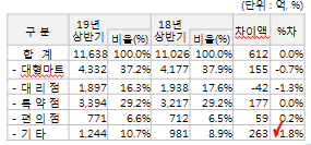 - 쇠고기 미역국 라면 : 19년 1분기 100억 → 19년 2분기 30억 수준(△70%)