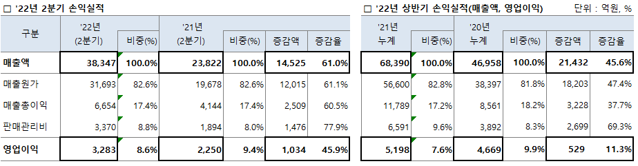 ■ 두산에너빌리티 '22년 손익실적(연결 손익계산서)