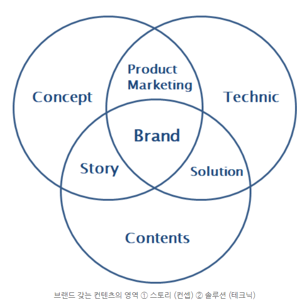 3] Concents : 그 브랜드가 이야기 하고자 하는 내용이다. 다시말해 목차를 말하며, Contents의 구성의 첫번째가 Concept에 관한 Contents인 Story이고 두번째가 Technic에 관한 Contents인 Solution이다.