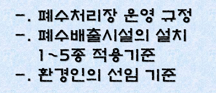 오늘은 폐수처리장 운영 규정과 사업장별 폐수배출량에 따른 1~5종 분리 기준 및 종에 따른 선임해야 하는 기준에 대해서 알아보겠습니다. 그리고 수질(폐수) 선임 기준과 '종'별 법적 책임의 차이에 대해서 정리하겠습니다.