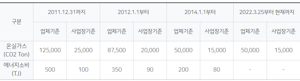기후위기 대응을 위한 탄소중립·녹색성장 기본법(이하 탄소중립기본법)에 따른 국가 중기 온실가스 감축 목표(2030년의 국가 온실가스 총배출량을 2018년의 온실가스 총배출량 대비 40퍼센트만큼 감축)를 달성할 수 있도록 온실가스 배출량이 일정 수준(50,000tCO2-eq 이상 업체, 15,000tCO2-eq 이상 사업장) 이상인 업체 및 사업장을 관리업체로 지정하여 온실가스 감축목표를 설정하고 관리하기 위한 제도입니다.