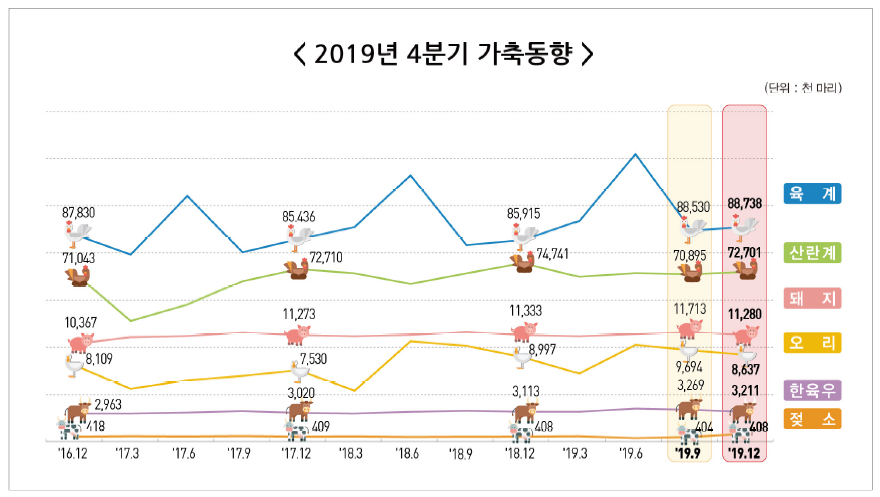 * 사육 마릿수(천 마리): (´18.12) 11,333 → (´19.9) 11,713 → (´19.12) 11,280