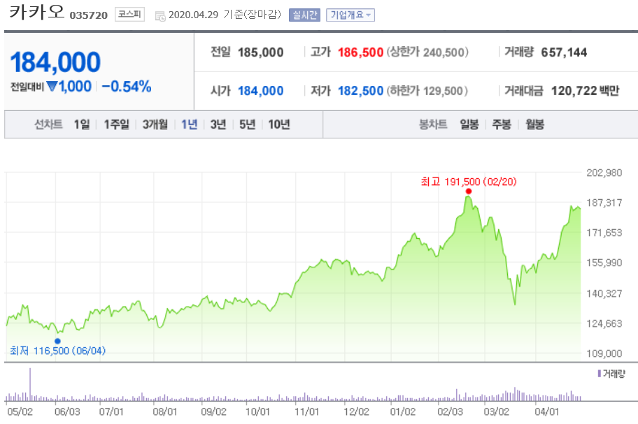 | 기업분석] 네이버 vs 카카오, 한국 최대 검색포털 자존심 네이버 주식이 오른 이유?? 스토어, 웹툰, 라인 이것만이 아니였다. 모든 사업이 승승장구... (10) | 2020.05.08 |