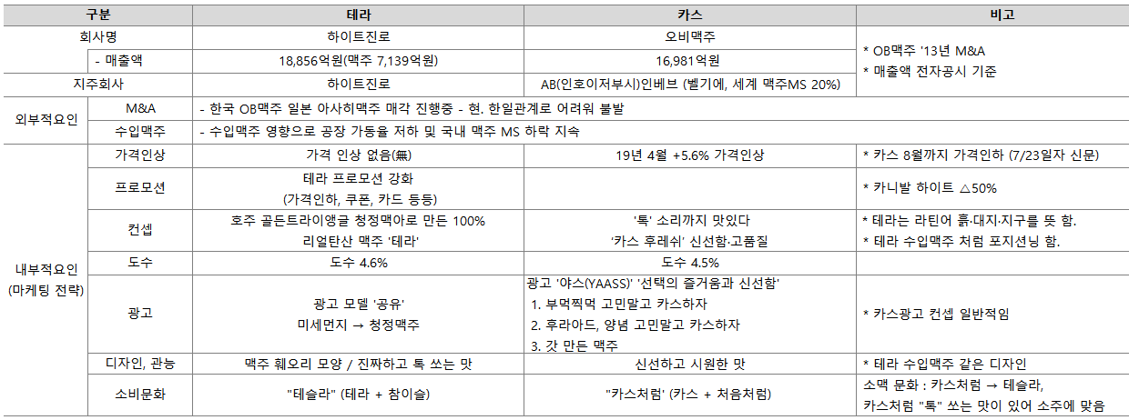 3) 하이트진로는 '테라'에 영업력 집중하여 가격할인, 쿠폰, 카드 등 모든 프로모션 강화