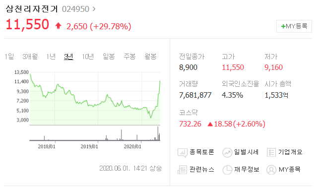 코로나 19로 인하여 대중교통을 꺼리는 소비자가 늘면서 자전거 매출이 큰 폭으로 증가하는데 따른 현상으로 지하철과 버스 등 기존 이동 수단을 기피하고 자전거 및 킥보드(전자자전거)를 이동 수단으로 삼는 수요가 늘어남에 따라 관련 기업들의 실적 개선 기대감이 높아지고 있는 상황입니다. 특히 대표업체인 삼천리자전거 주가는 계속 오르고 있습니다.