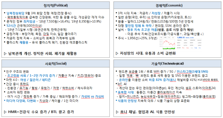 HMR + Health Care 식품 성장. 4차 산업혁명(온라인, AI, 핸드폰)의 급속한 진전으로